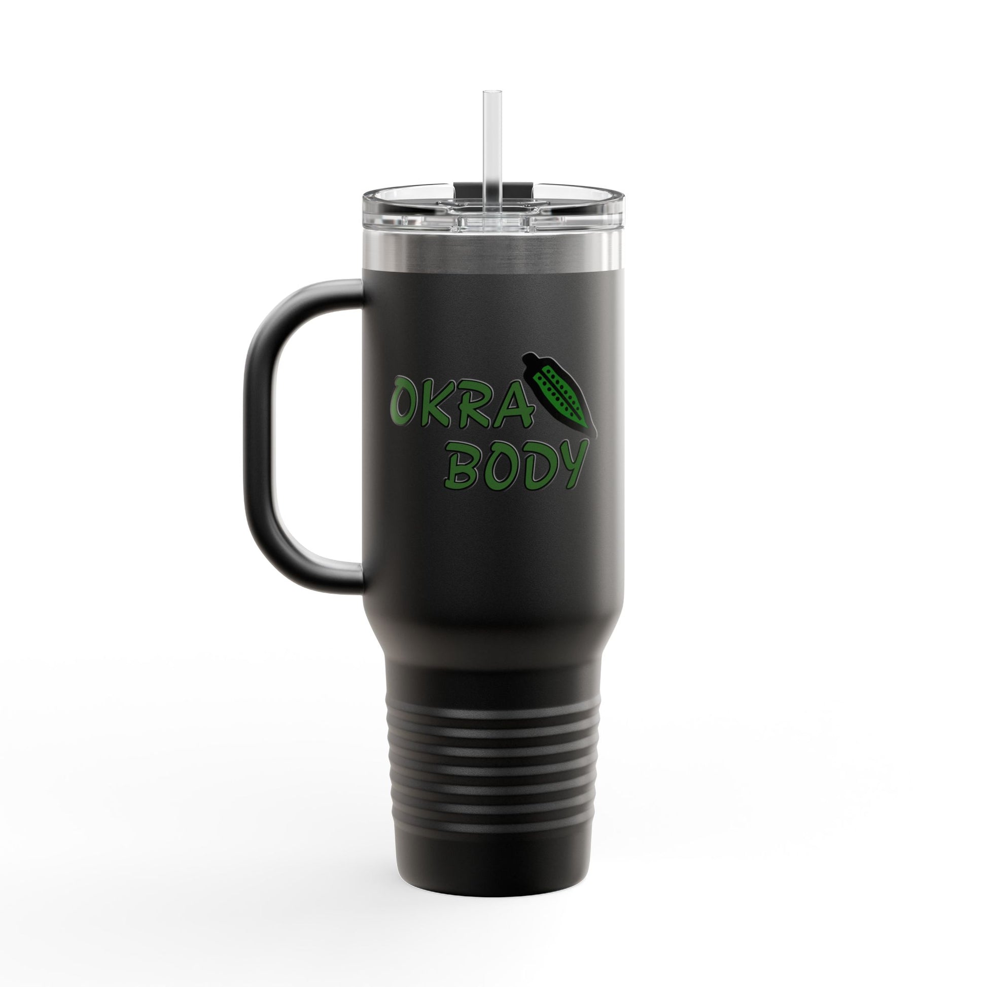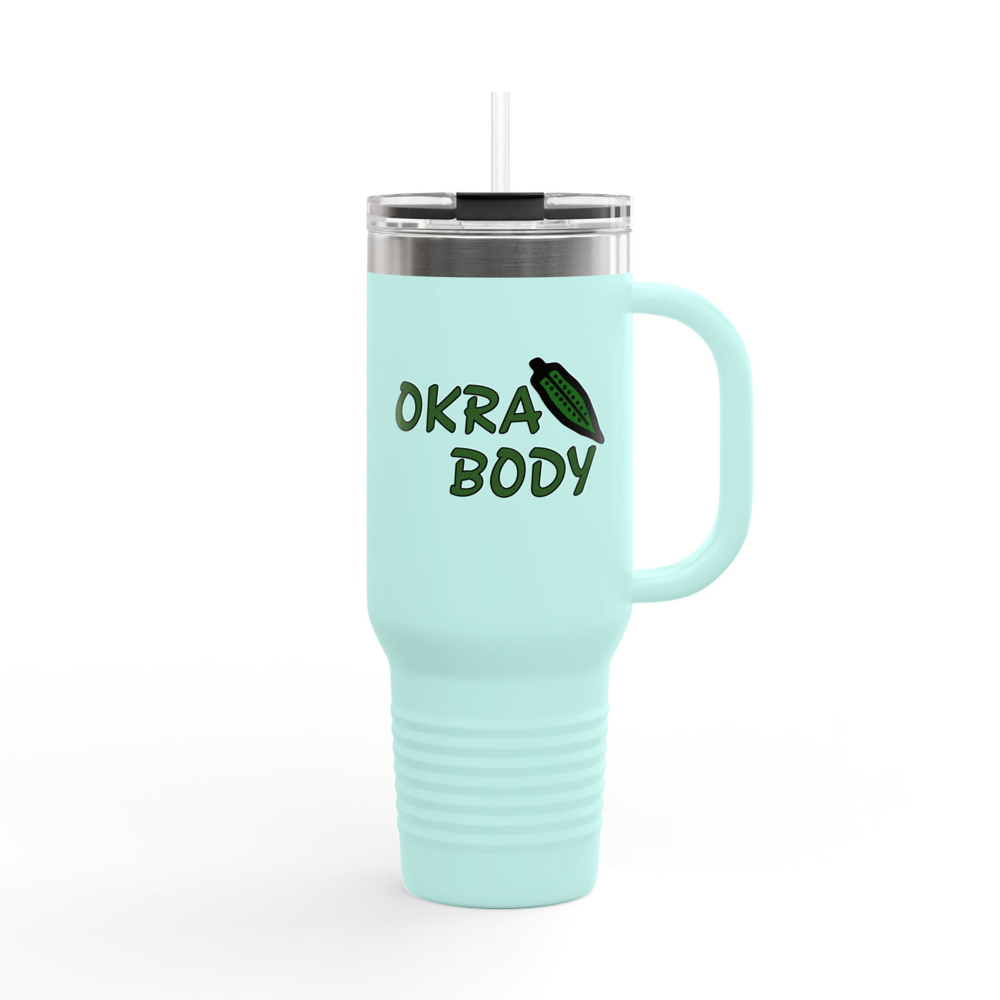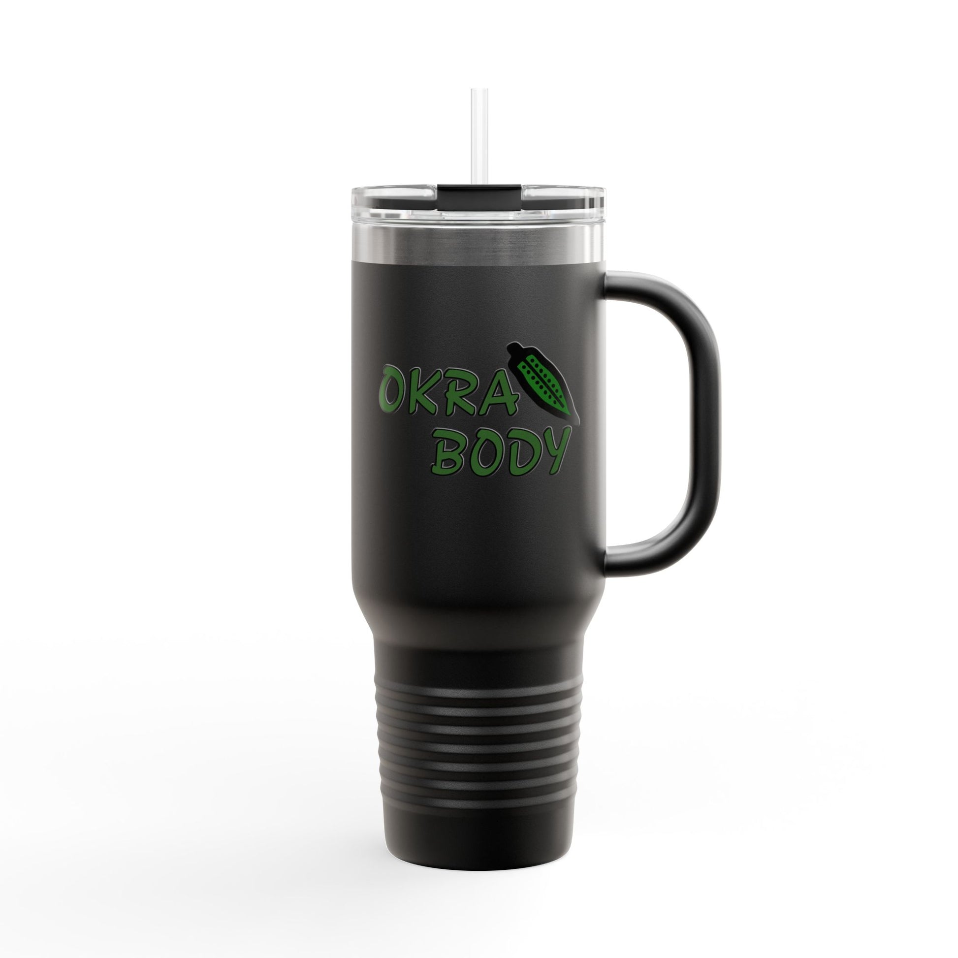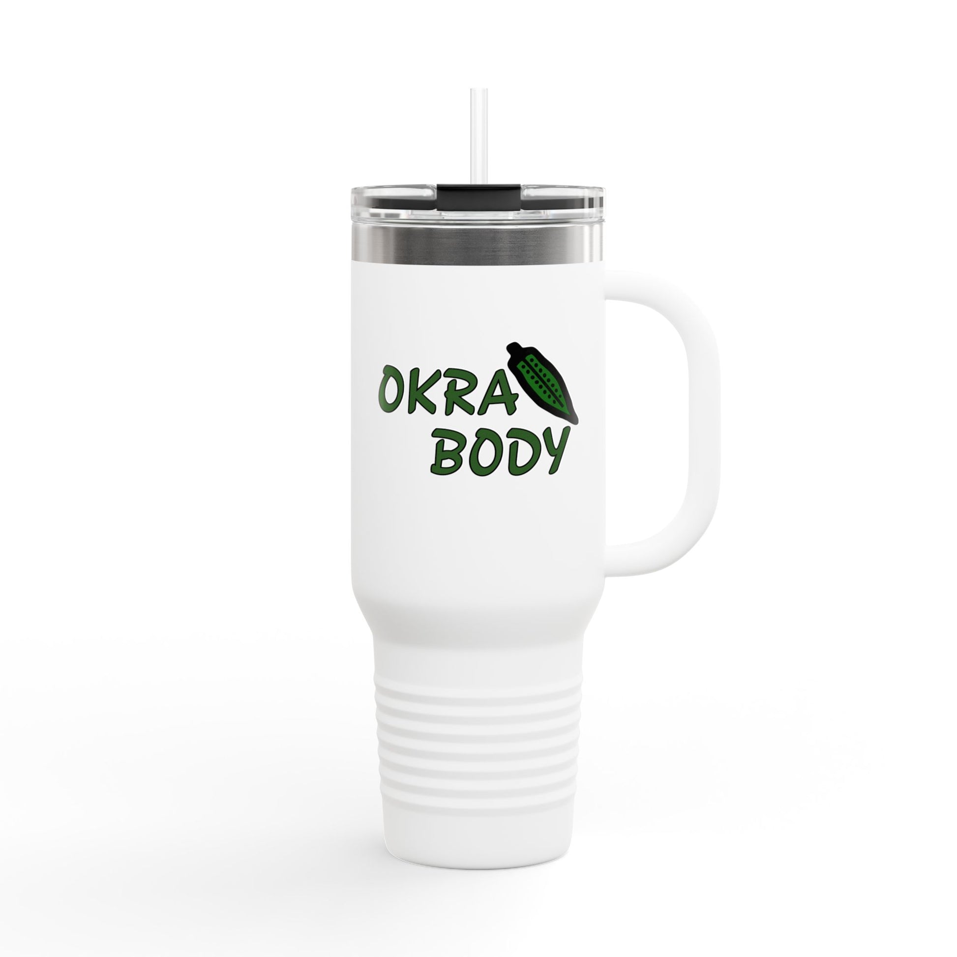 40oz Insulated Travel Mug — 'Okra Body' Stainless Tumbler with Handle & Straw