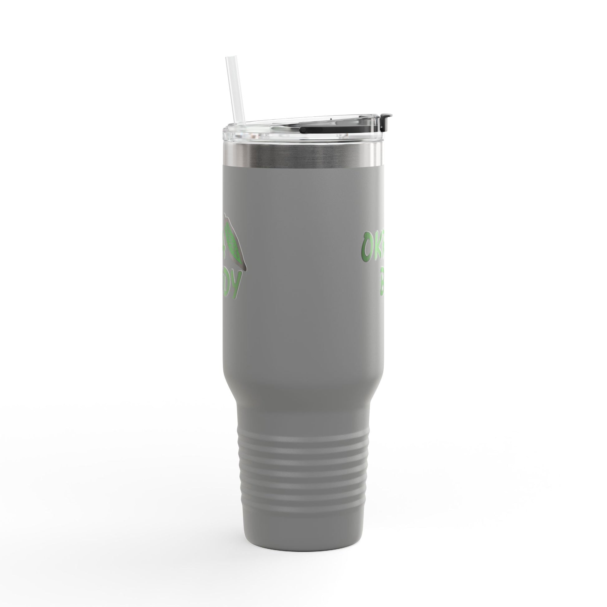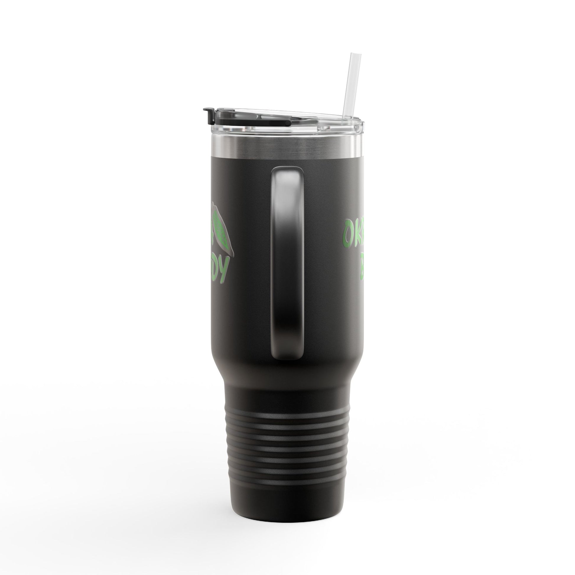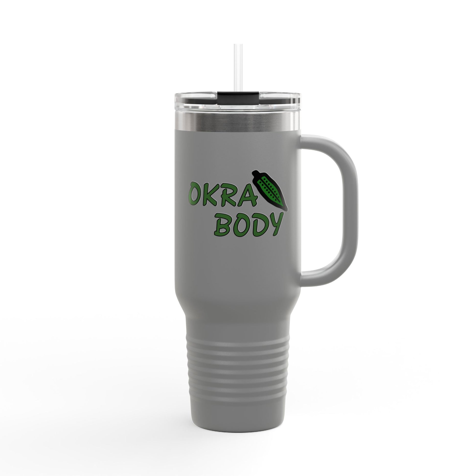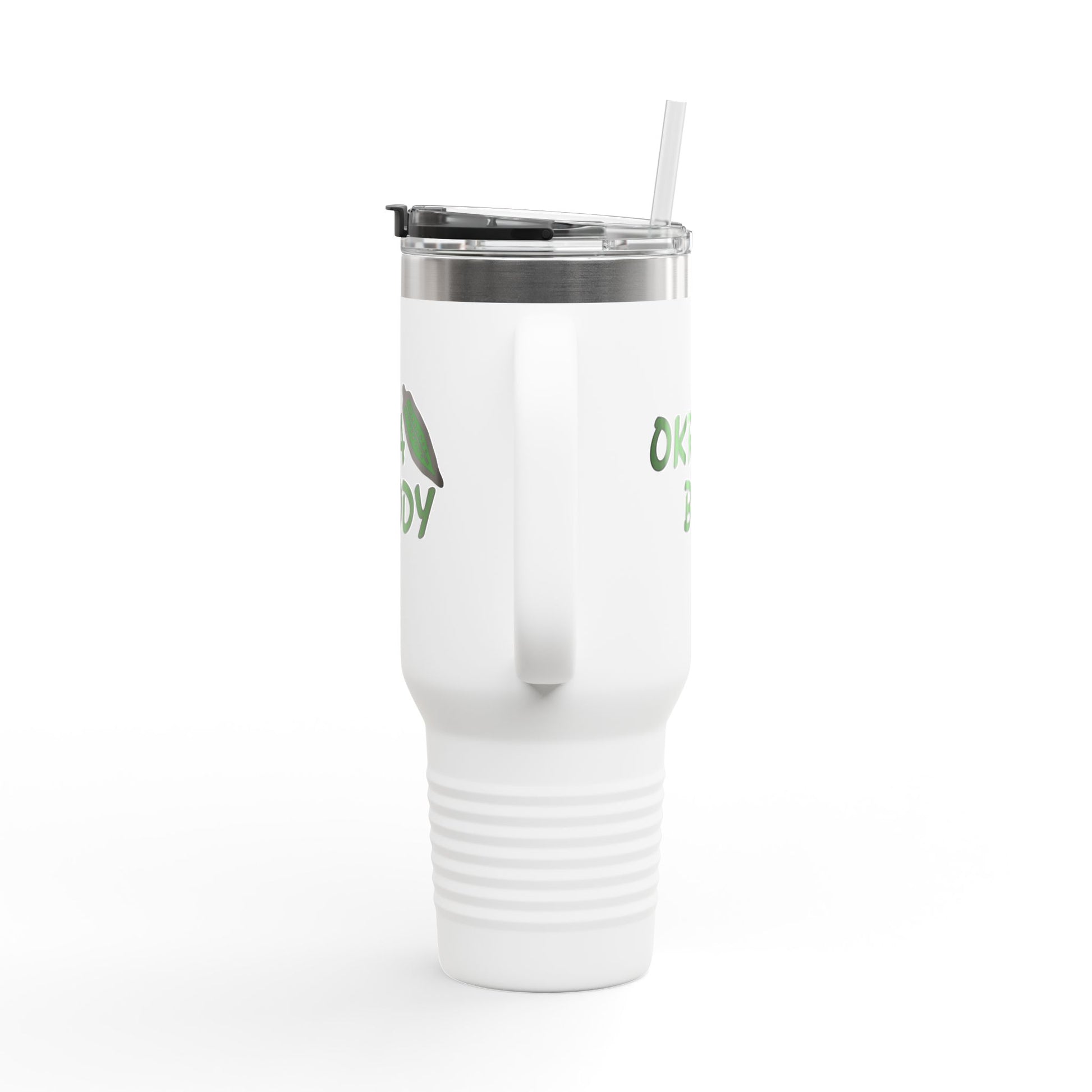 40oz Insulated Travel Mug — 'Okra Body' Stainless Tumbler with Handle & Straw